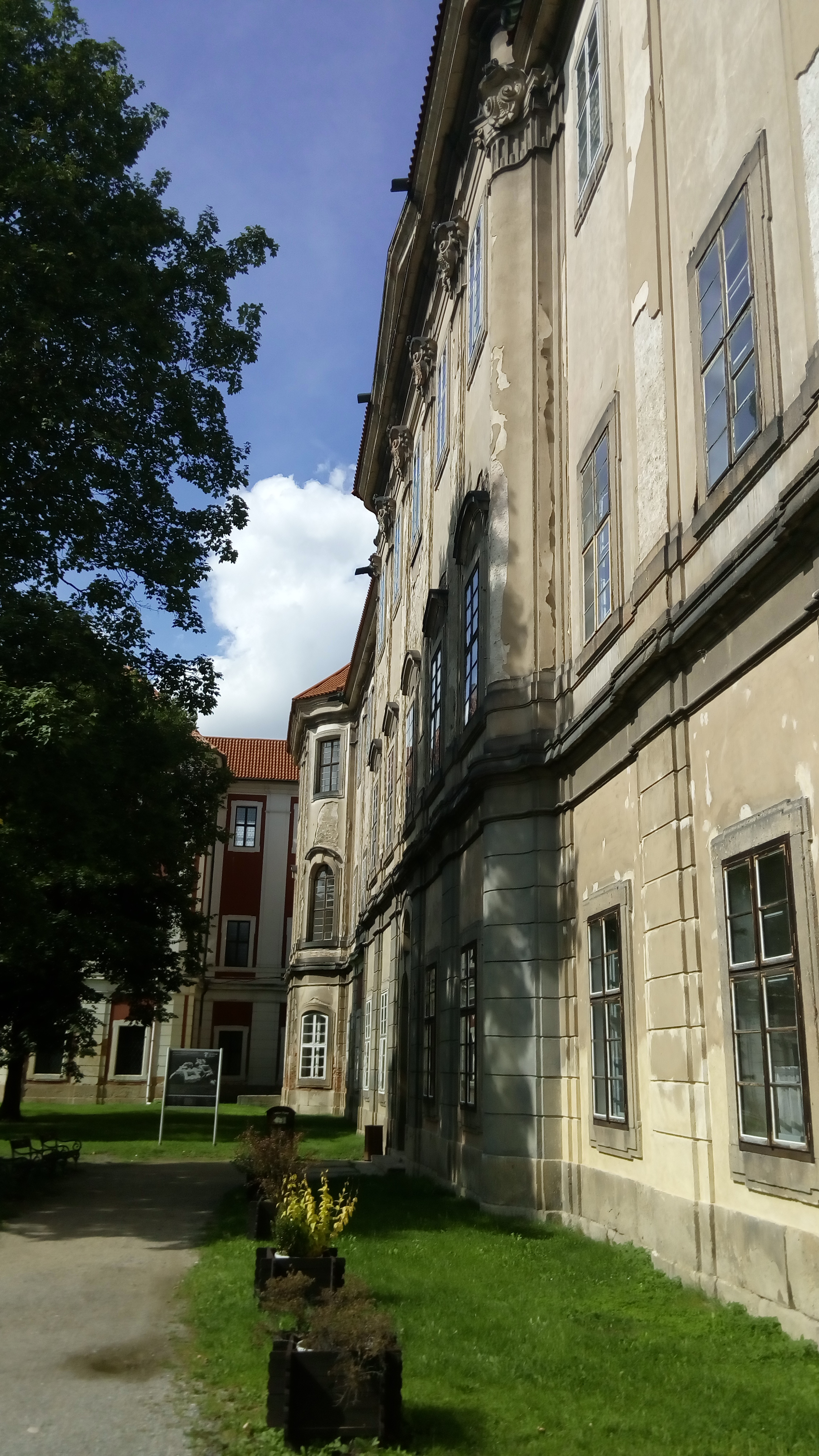 La première abbaye cistercienne en Bohême fondée, il y a 870 ans, par le prince des Přemyslides Vladislav II. Entre 1661 et 1785, l’abbaye a été rebâtie monumentalement au style baroque selon les idées et les plans de Jean Baptiste Matheye, Jean-Blaise Santini Aichel et Kilian Ignace Dientzenhoffer. En 1785, la plus grande et importante abbaye cistercienne tchèque a été supprimée afin de pouvoir devenir, 40 ans plus tard, la résidence de Clément Metternich et de sa famille qui y a laissé fonder son caveau de famille.